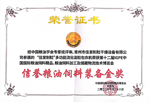 Credit Grain, Oil and Feed Equipment Gold Award